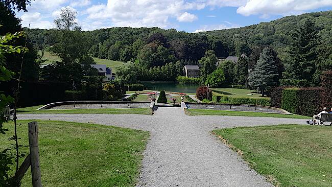 Dieser Wassergarten mit dem wunderschönen Wasserschloss gehört zu den bedeutenden Kulturgütern Walloniens. Die mannigfaltigen Facetten des Gartens, von eindrucksvollen majestätischen Perspektiven mit vielen Wasserläufen und Wasserspielen, bis hin zu ganz intimen Parkecken. Am Rand gelegen im Naturschutzgebiet gibt es die Soayschafe, die Vorfahren unserer europäischen Schafe.