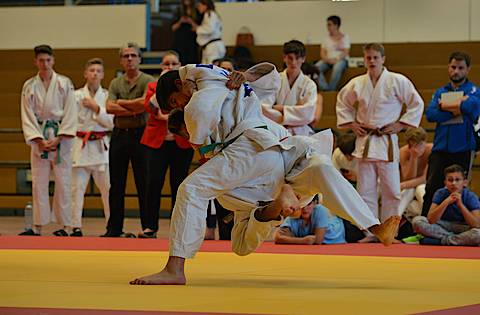- Hugo Mayer wirft seinen seiner Gegner mit einem O Soto Gari voll auf den Rücken