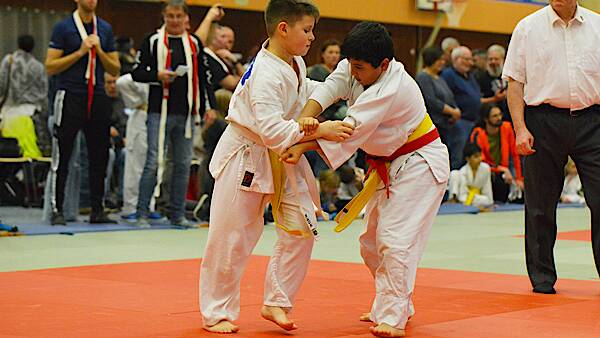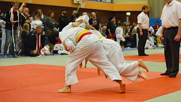 3 Kämpfe 3 Siege für die Brüder Othman Diaaeddin bis 24 Kilogramm und Tarek bis 31 Kilogramm, die ihren Gegnern kaum Angriffsmöglichkeiten gaben. Paul Bin bis 30 Kilogramm kämpfte technisch und taktisch schlau und war damit auch ebenwürdigen Judokas ein stückweit überlegen. Artjom Grenz kämpfte in der Klasse bis 42 Kilogramm und gewann unter anderem gegen seine Vereinskameradin Katherina Durlet. Während Katherina am Schluss noch Dritte wurde holte sich Artjom nach weiteren Siegen Gold in dieser Klasse. Seinen ersten Turniererfolg feierte Eyad Albakkar in der Klasse bis 55 Kilogramm. Er hat schon einige Turniere in 2023 mitgemacht, aber für ganz oben hatte es für den jungen Syrer noch nicht gereicht. Doch diesmal zeigte er sich hochmotiviert, profitierte von einigen technischen Tricks, der er in den letzten Wochen gelernt hatte und gewann damit auch alle seine Kämpfe vorzeitig.
