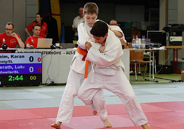 Laila wagte sogar den Doppelstart in der Altersklasse U13 und gewann diese ebenfalls als noch Neunjährige. Denis Papadopoulos (bis 34 Kilogramm) überzeuge im Finale mit einem schönen Umdreher am Boden. Er lag bereits im Haltegriff fest, aus dem der sich befreien konnte um dann selbst seinen Konkurrenten aus Saarlouis mit Haltgriff zu besiegen. Karam Aldheim erkämpfte sich sein erstes Gold im Judo bis 50 Kilogramm. Im Finale gewann er mit einer schönen Kontertechnik, die er kurz vor Ende der normalen Kampfzeit von 3 Minuten erfolgreich einsetzte.